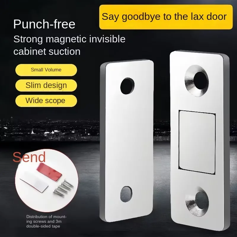 Magnetic Sliding Wardrobe Door Self-Absorption Strip Cushion Strong Door Suction Invisible Door Closers